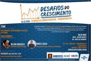 No próximo dia 08 de maio, empresários de Parauapebas e região poderão participar do Seminário Desafios do Crescimento, evento anual e gratuito realizado pelo SEBRAE com o apoio de parceiros como a Prefeitura, SEDEN, Câmara Municipal e FIEPA.